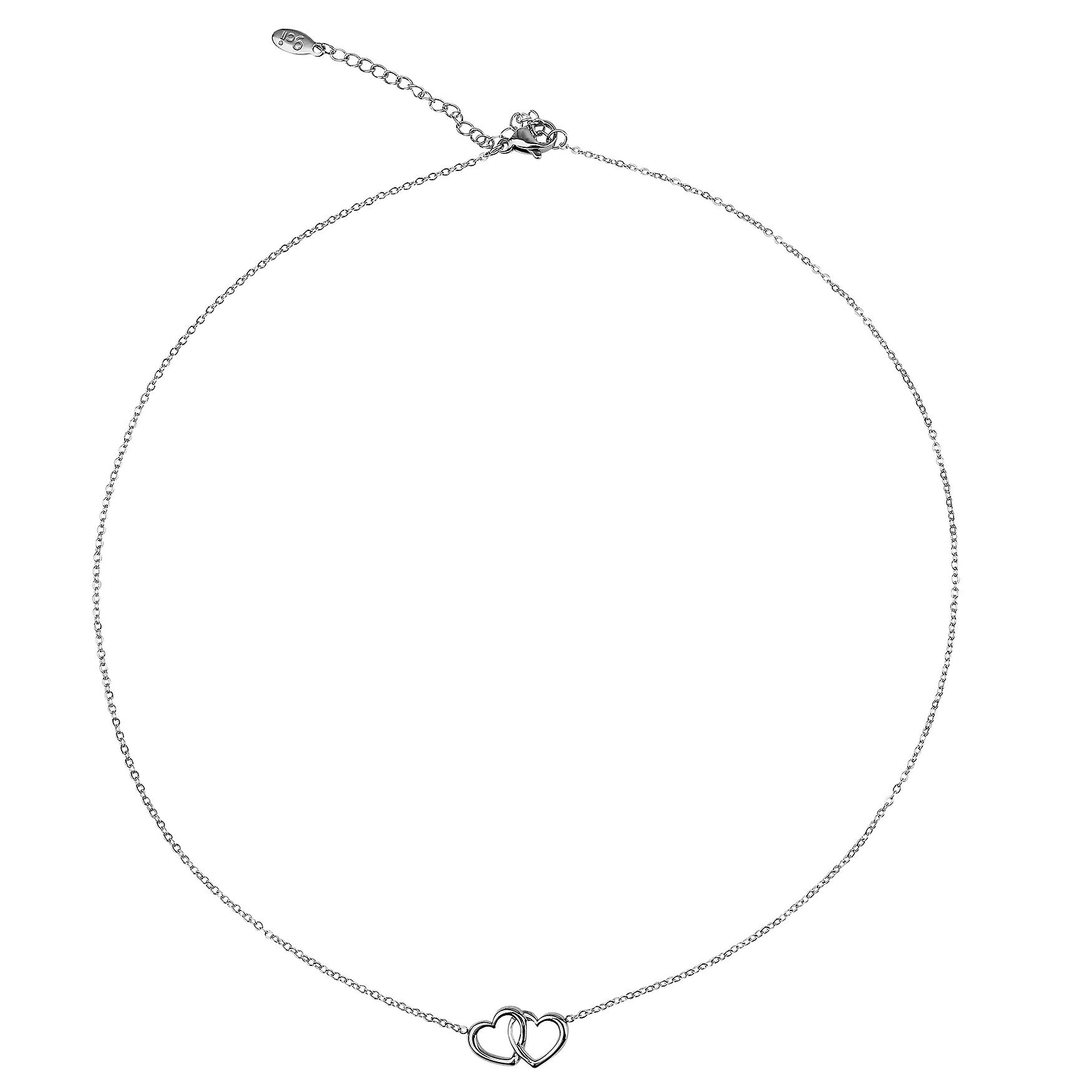 Elegante Halskette mit Doppelherz Anhänger Modeschmuck aus Edelstahl ANELY