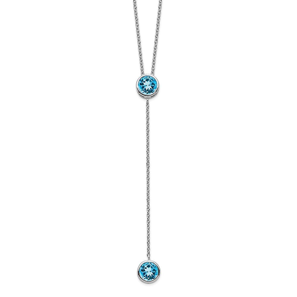 925 Sterling Silver Rhodium Plated Blue Topaz With 2inch Ext. Y-necklace 16 Inch 7.46mm Wide Pendant Necklace for Women