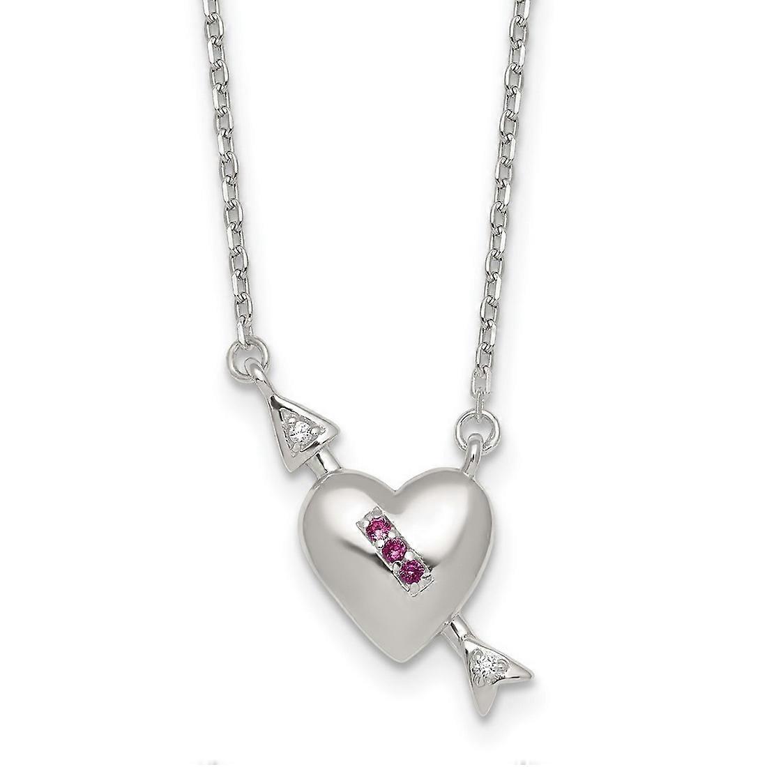 925 Sterling Silver Pink and White CZ Love Heart And Arrow With 2 Inch Extension Necklace 16 Inch Pendant Necklace for W