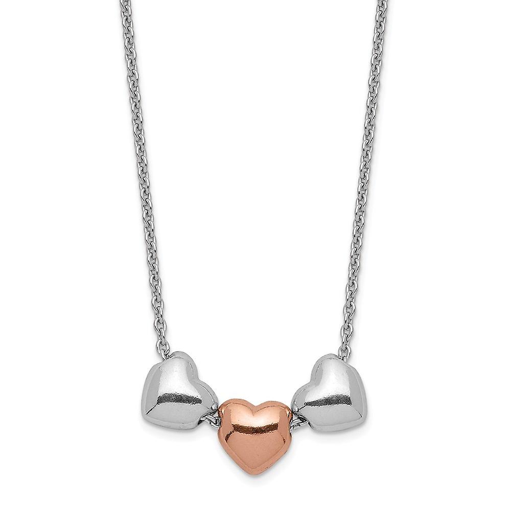 925 Sterling Silver Rose tone Fancy Lobster Closure Polished Love Heart With .75inch Extender Necklace 18 Inch Pendant N