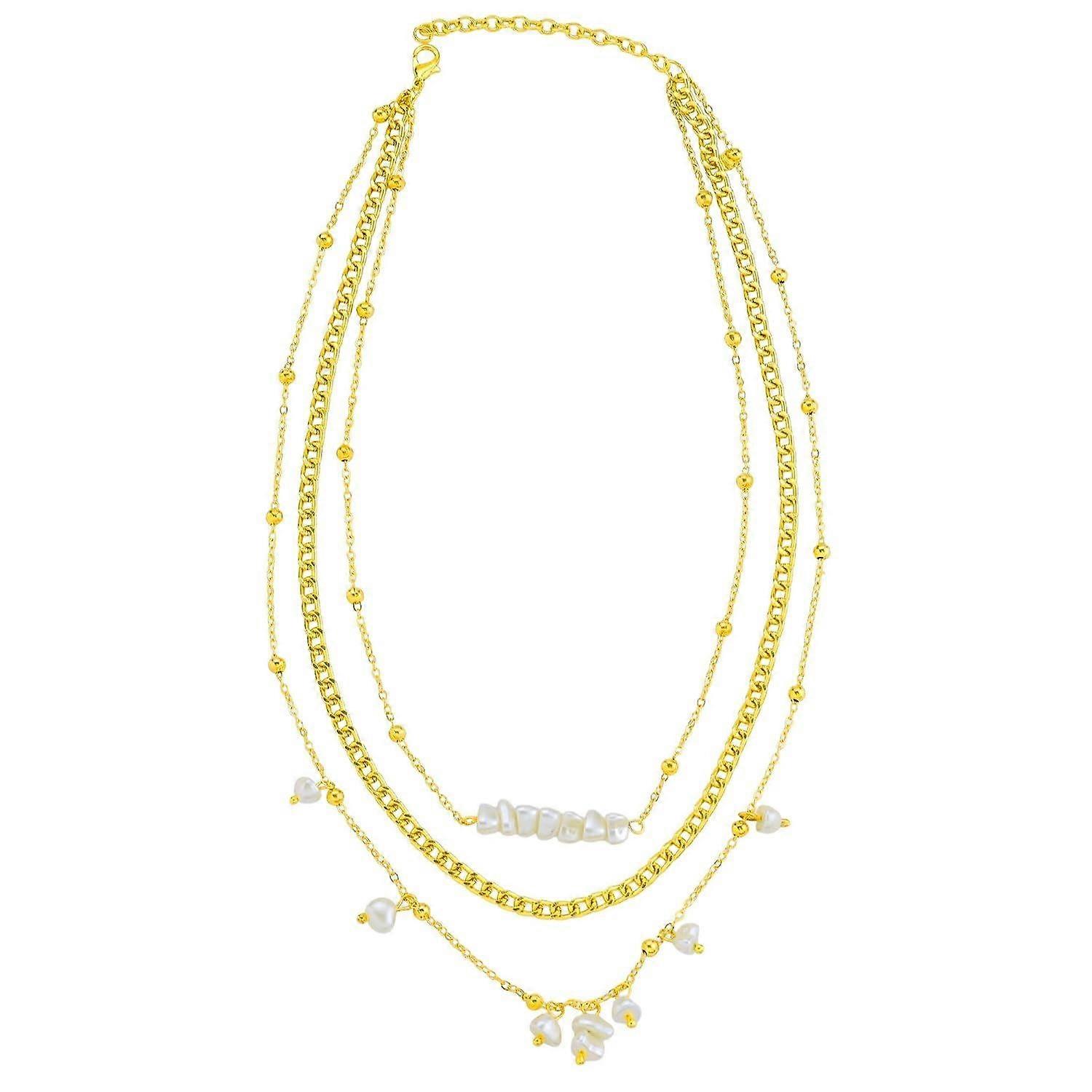 Women Anti-Tarnish Triple Layer Necklace With Uncut Pearls | Traditional Jewellery for Womens & Girls