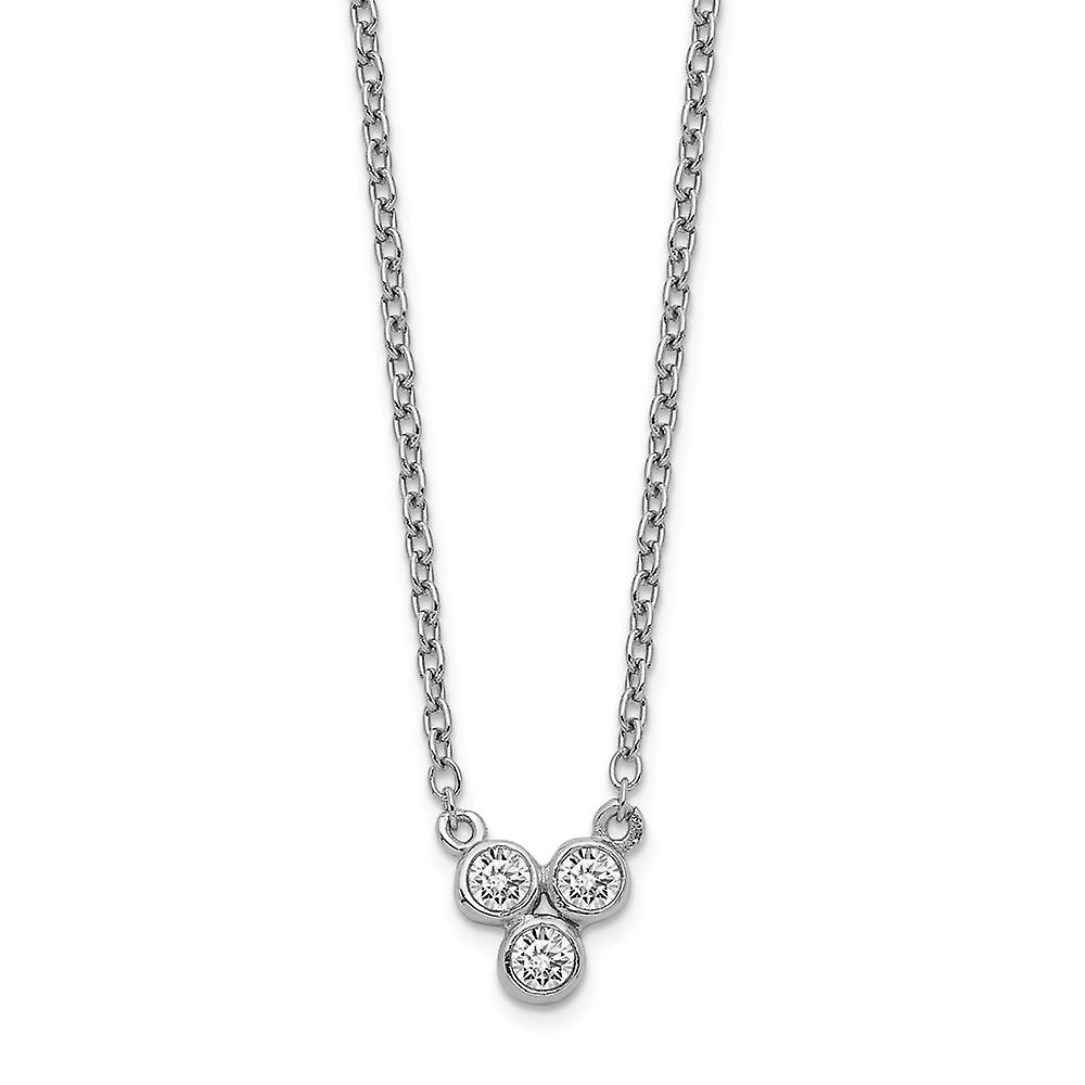 925 Sterling Silver Rhodium Plated 3 Cubic Zirconia With 2inch Ext Necklace 16 Inch 7.6mm Wide Pendant Necklace for Wome