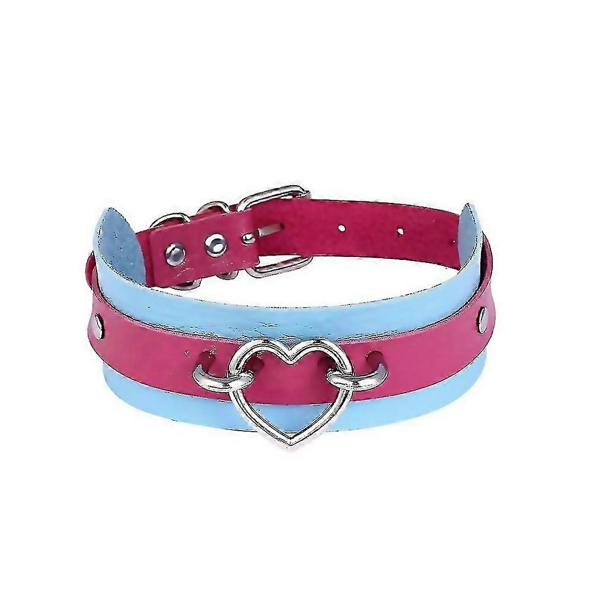 For Two Tone Heart Choker Necklace For Women Girls Kawaii Pastel Goth Cute Leather Collar Goth Jewel