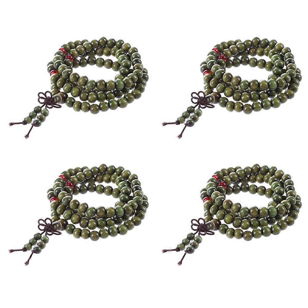 4X Olive Green Sandalwood Beads Buddha Buddhist Mala Stretch Necklace Rosary 29 Inch