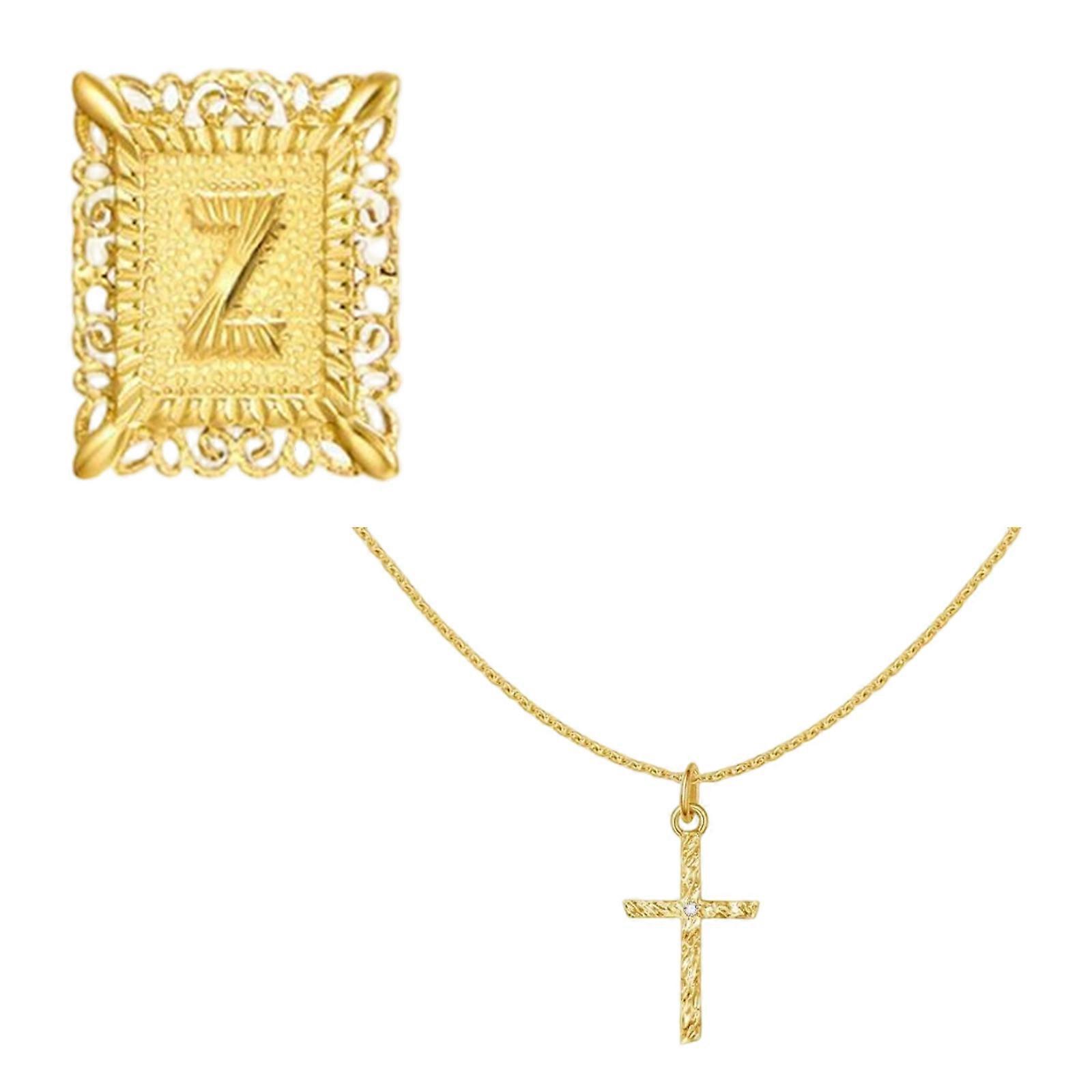 Fashionable Double Layer Religious Crucifix and Letter Necklace Adjustable Length Copper Chain Suitable for Daily Wear Multicolor
