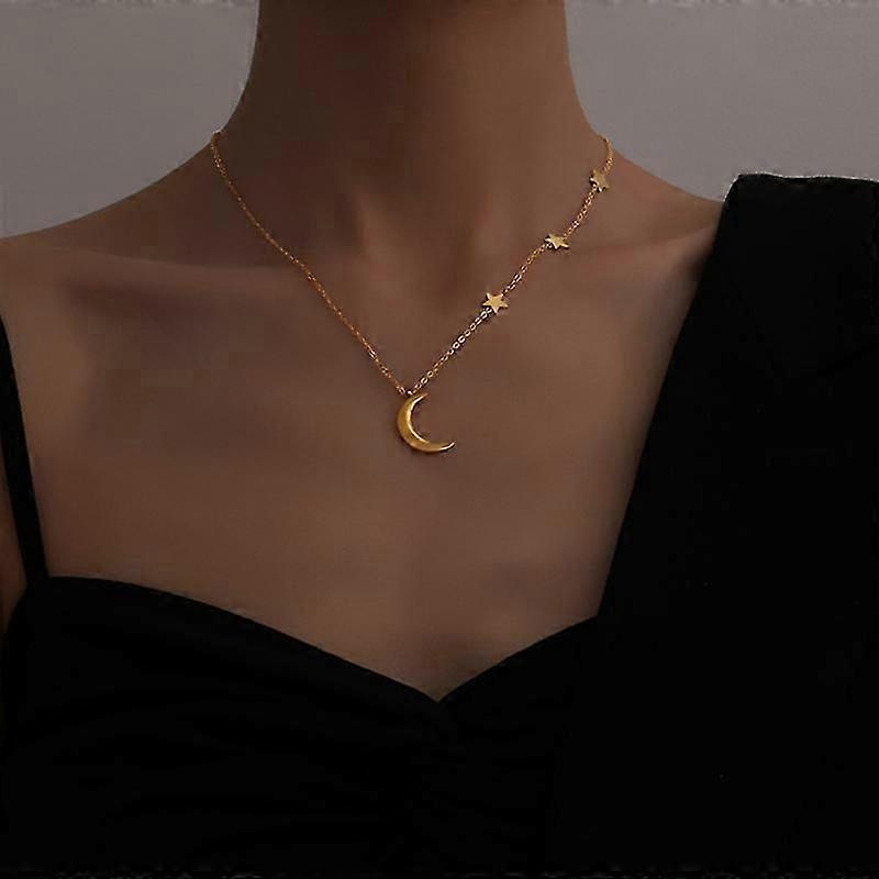 Peri sBox Small Crescent Moon And Stars Necklaces Hollow Double Layer Chain Choker Necklaces Unusual Statement Boho Sea Necklace