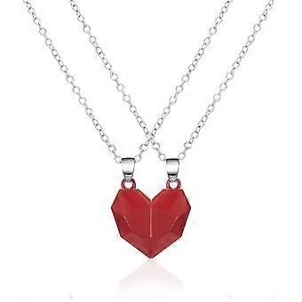 Colares pendentes de coração - Colares magnéticos do amor do casal, conjunto de colar de prata de 2 peças com comprimento de corrente ajustável