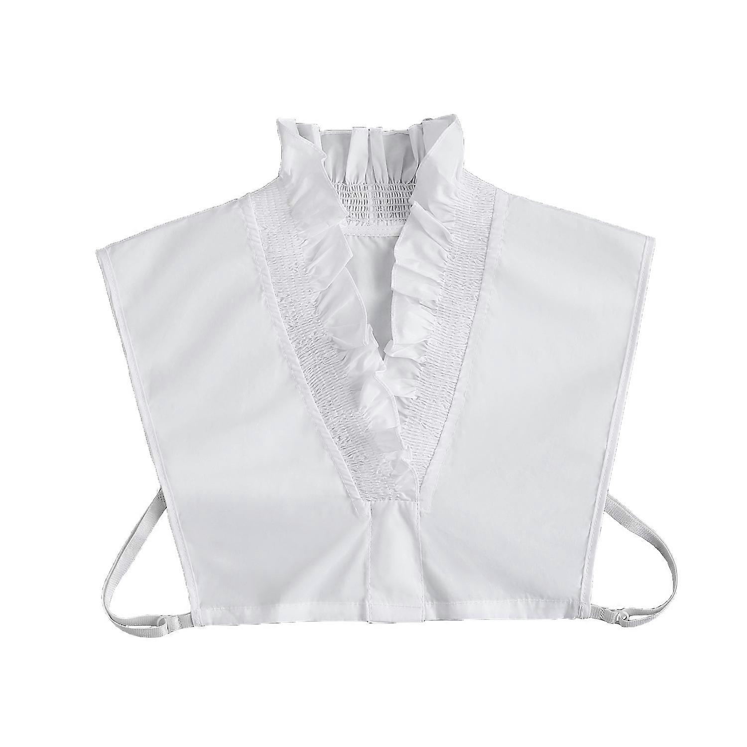 Ruffled Cotton V-Neck Detachable Collar for Women, White Lace Shirt Collar for Sweater in Fall Winter