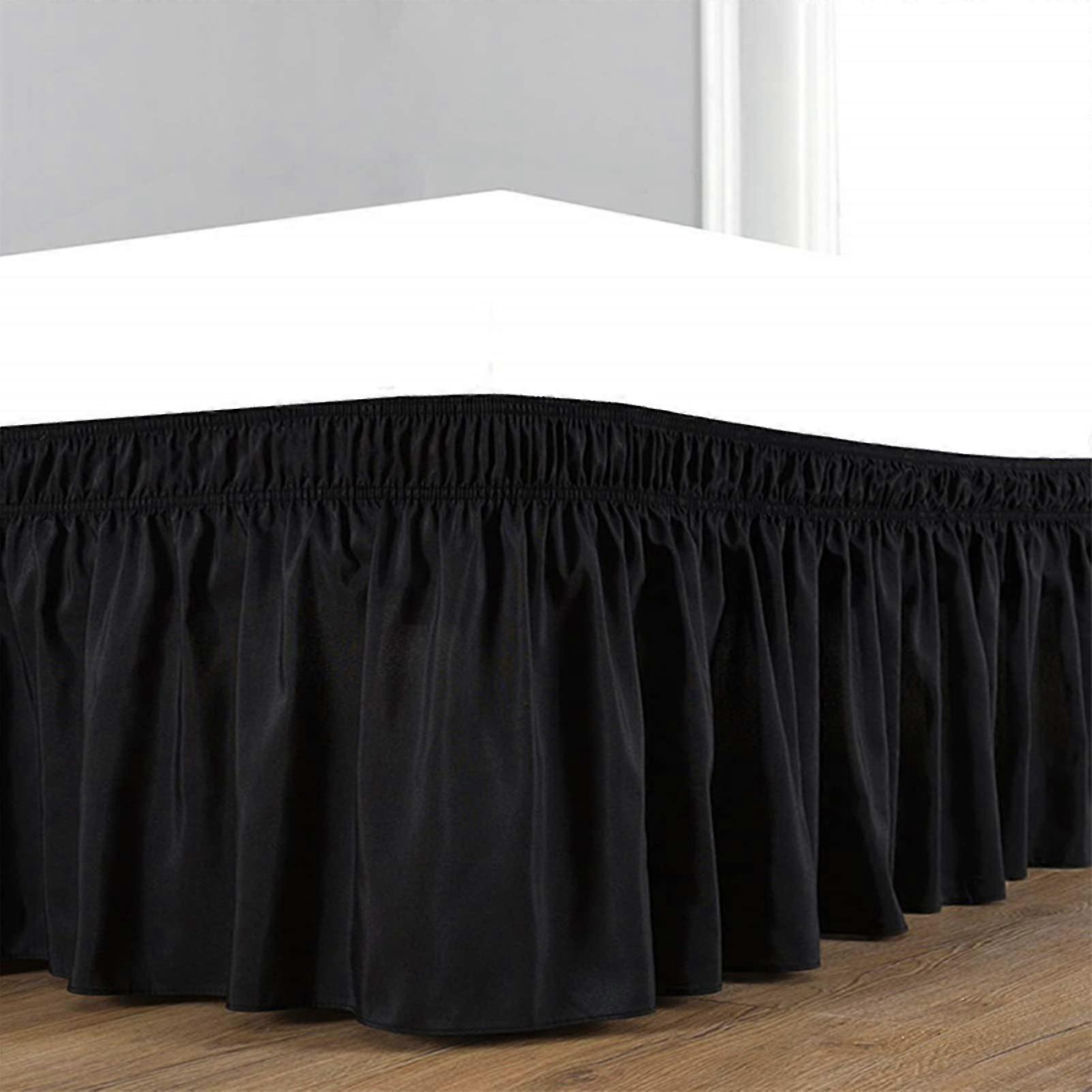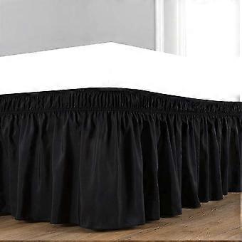 Black bedspread with ruffled hem and elastic, wrap-around bed skirt, no bed stone (150 x 200 x 45 cm)