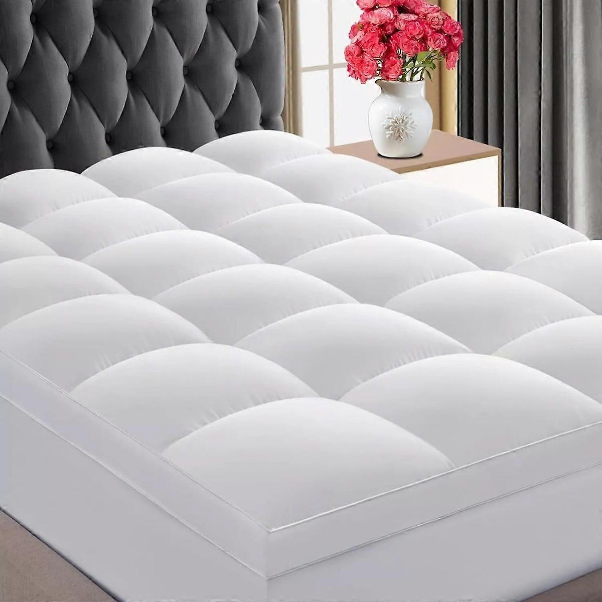 Thick Mattress Pad Quilted Cooling Mattress Topper Soft Filled 18" Deep Pocket White Twin Size:39*75in
