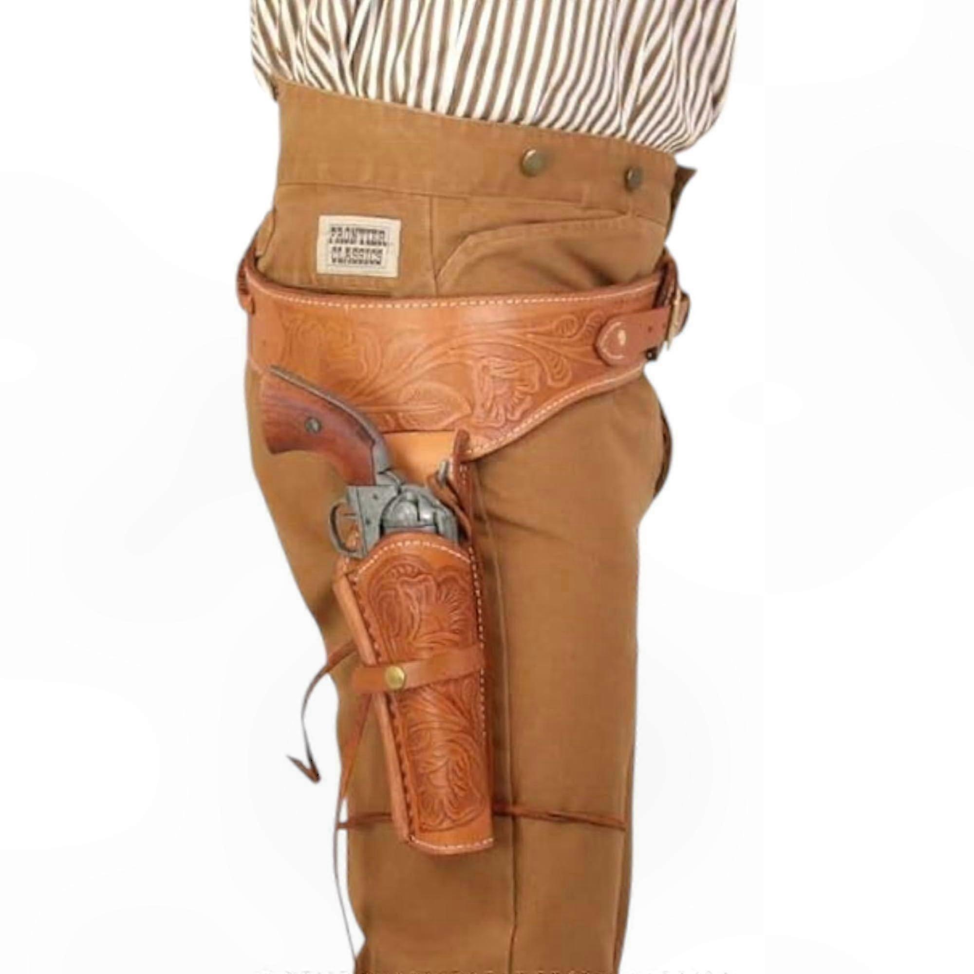 Handcrafted Western Pistol Holster with Belt for .22, .357, .44 Caliber Revolvers and 6-9 Inch Barrels