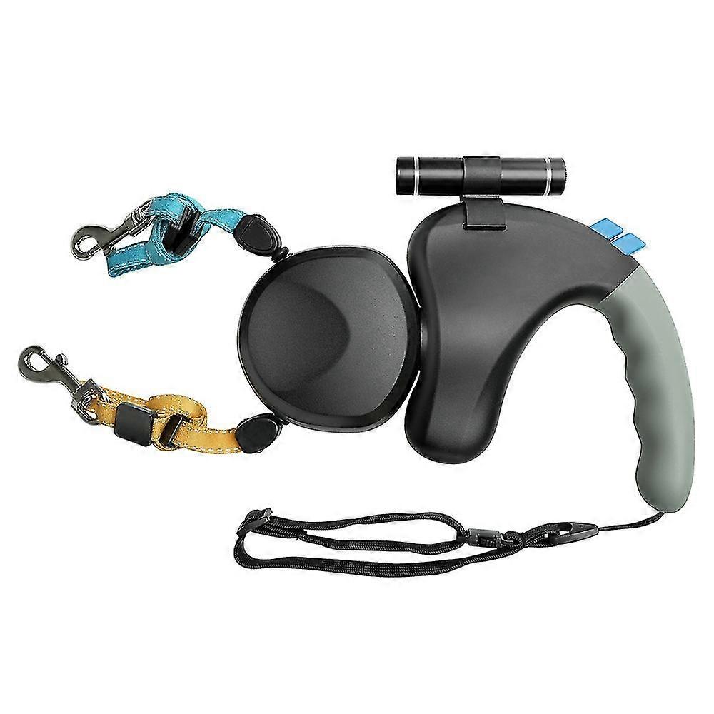 Dual Retractable Dog Leash with LED Flashlight - BENWIS HA-DWL-2 Grey Pet Walking Traction Rope