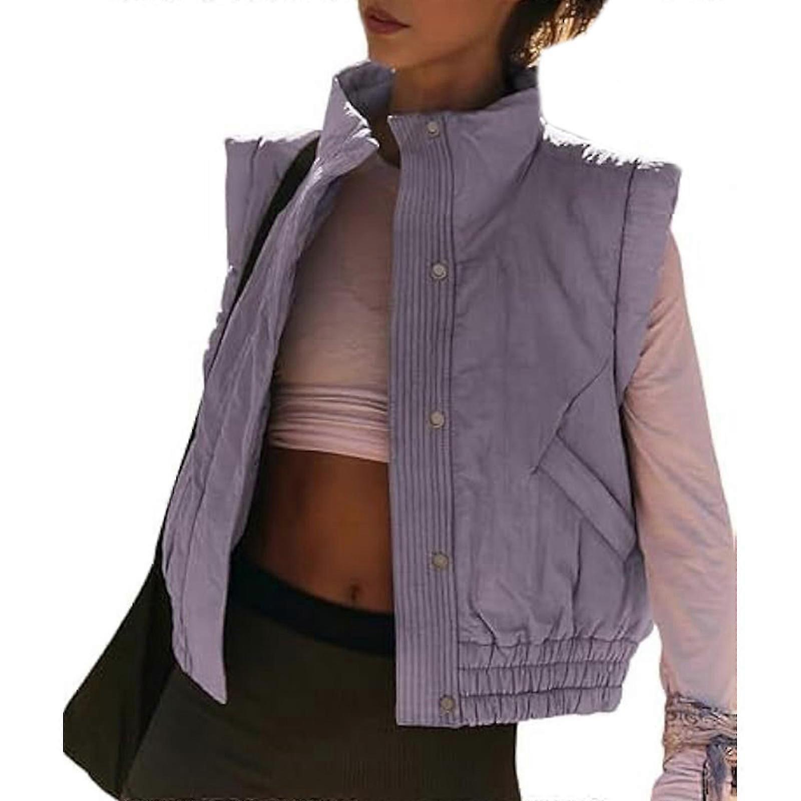 Fashionable Quilted Vest with Stand Collar Sleeveless Padded Jackets Waistcoat Button Down Cropped Gilet Coat for Women fluorescent green