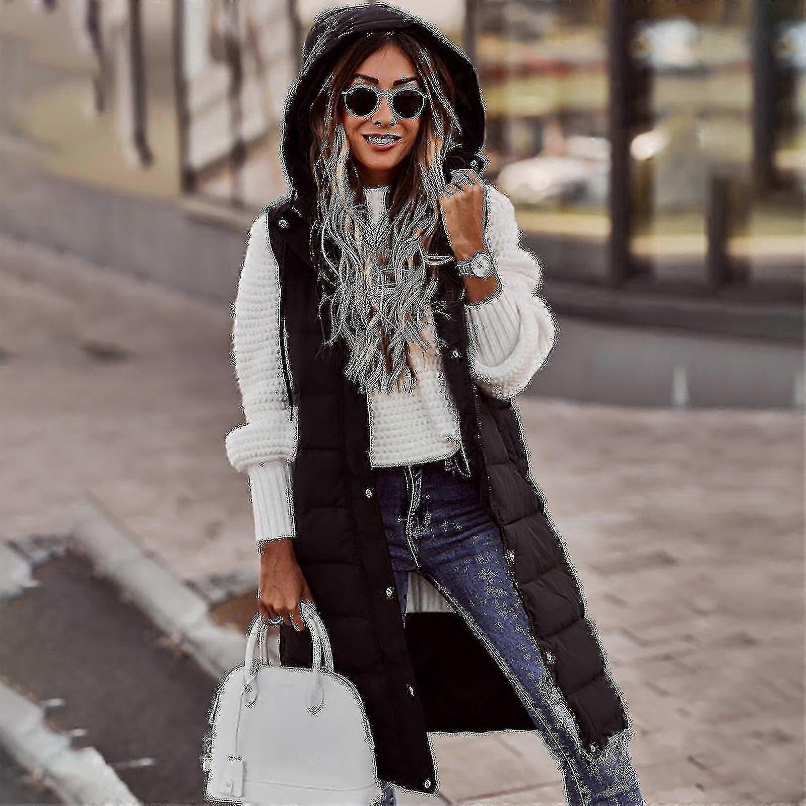 Padded vest for women - Hooded sleeveless jacket with pockets