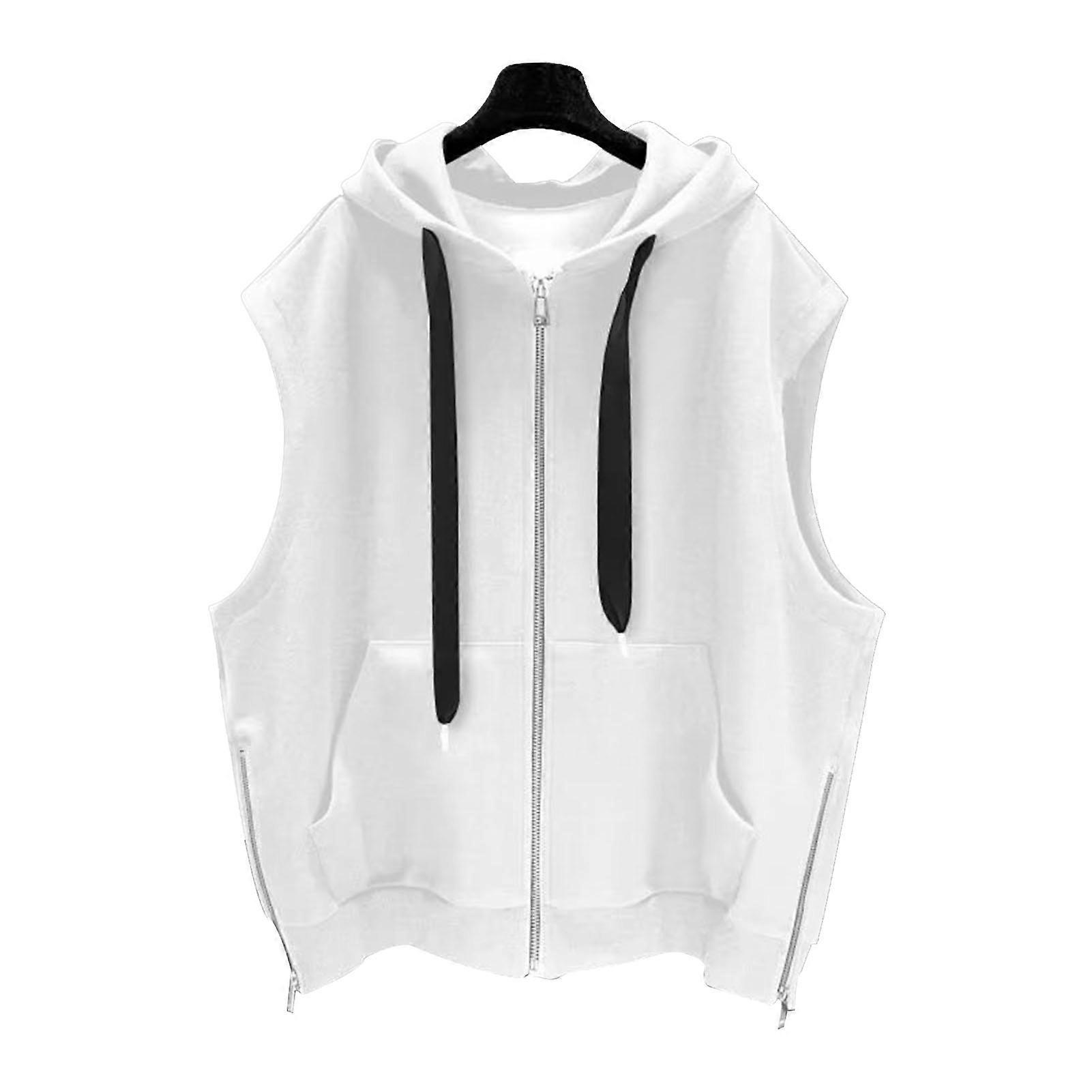 Zipper Hooded Vest Comfortable Breathable Hooded Sleeveless Vest Jacket with Pockets for Men and Women Summer