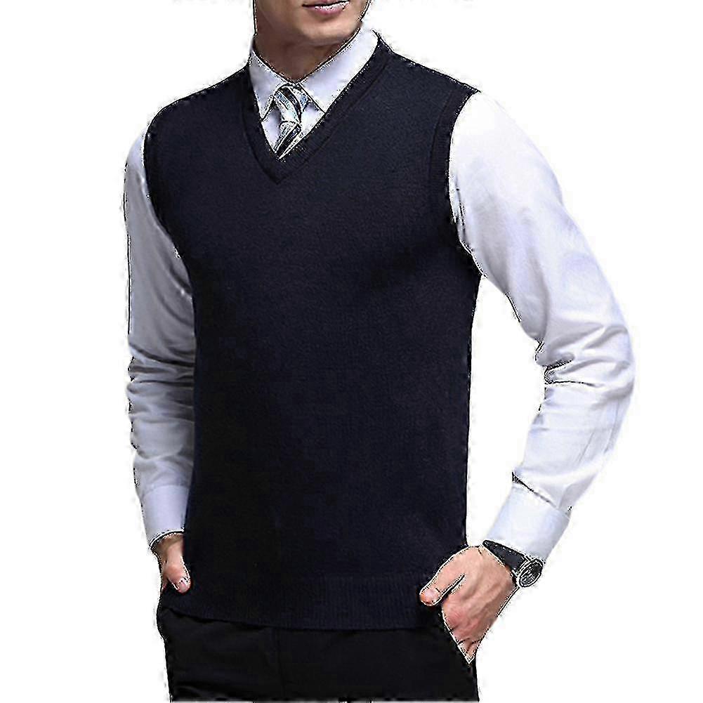 Solid Color Knitted Sweater Vest for Men - Classic V Neck Warm Style