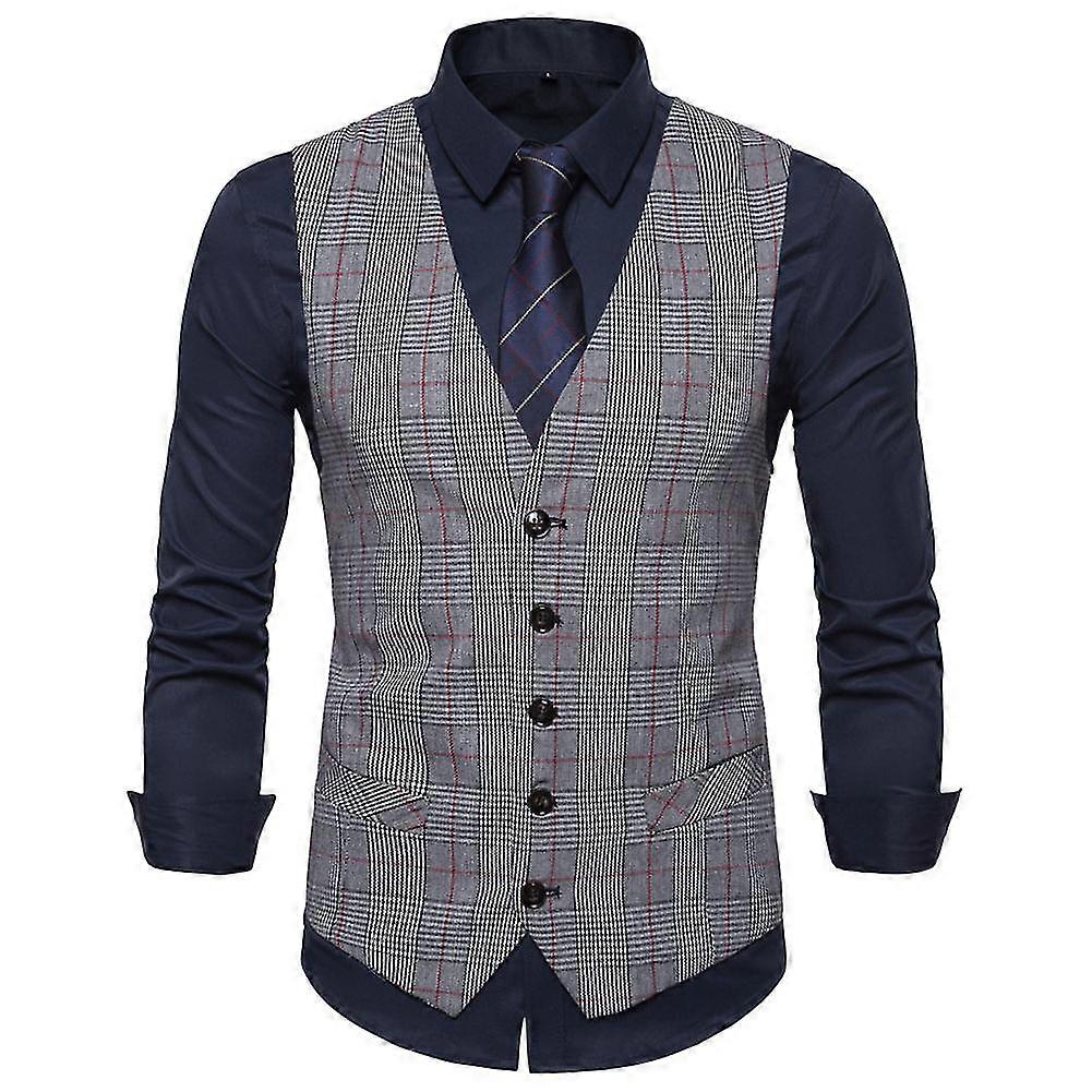 Men'S V-Neck Suit Vest Lattice Casual Fit 5 Button Vest