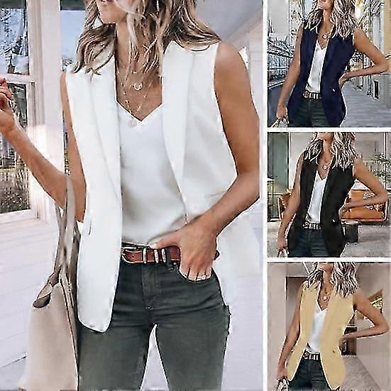 Summer Lapel Sleeveless Suit Vest Fake Flap Pockets Single Button Solid Color Slim Fit Office Waistcoat Workwear