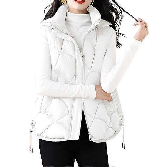 Women Cotton Vest Stand Collar Hooded Sleeveless Waistcoat Loose Fit Solid Color Zipper Closure Short Vest