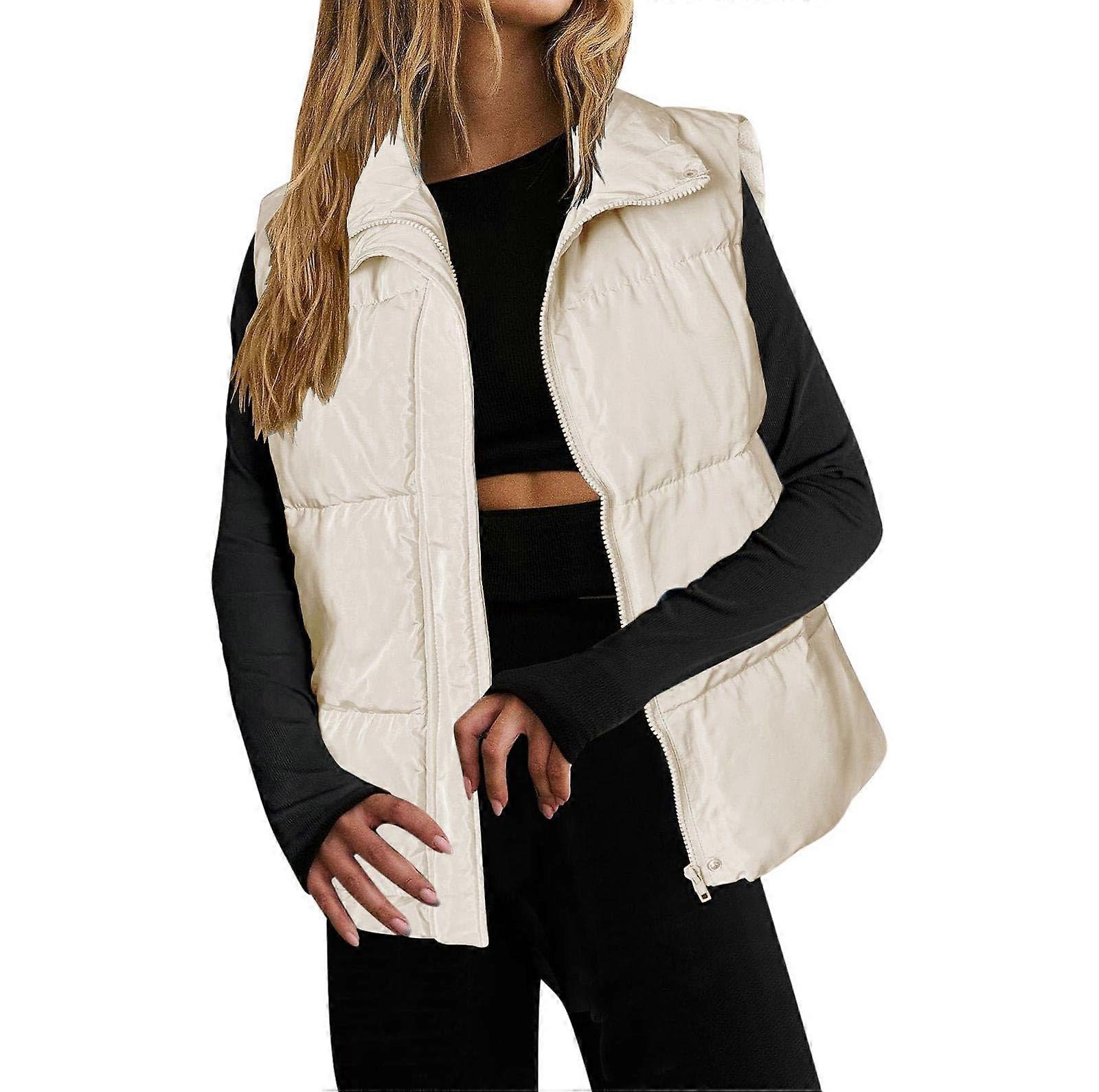 Women's Down Vest Autumn Casual Lapel Lightweight Sleeveless Zipper Padded Jacket White XL