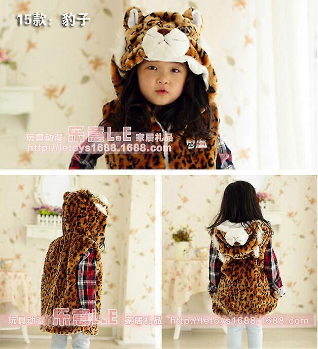 Kids Vest With Animal Hoodie Plush Fluffy Warm Jacket Great Gift For Children