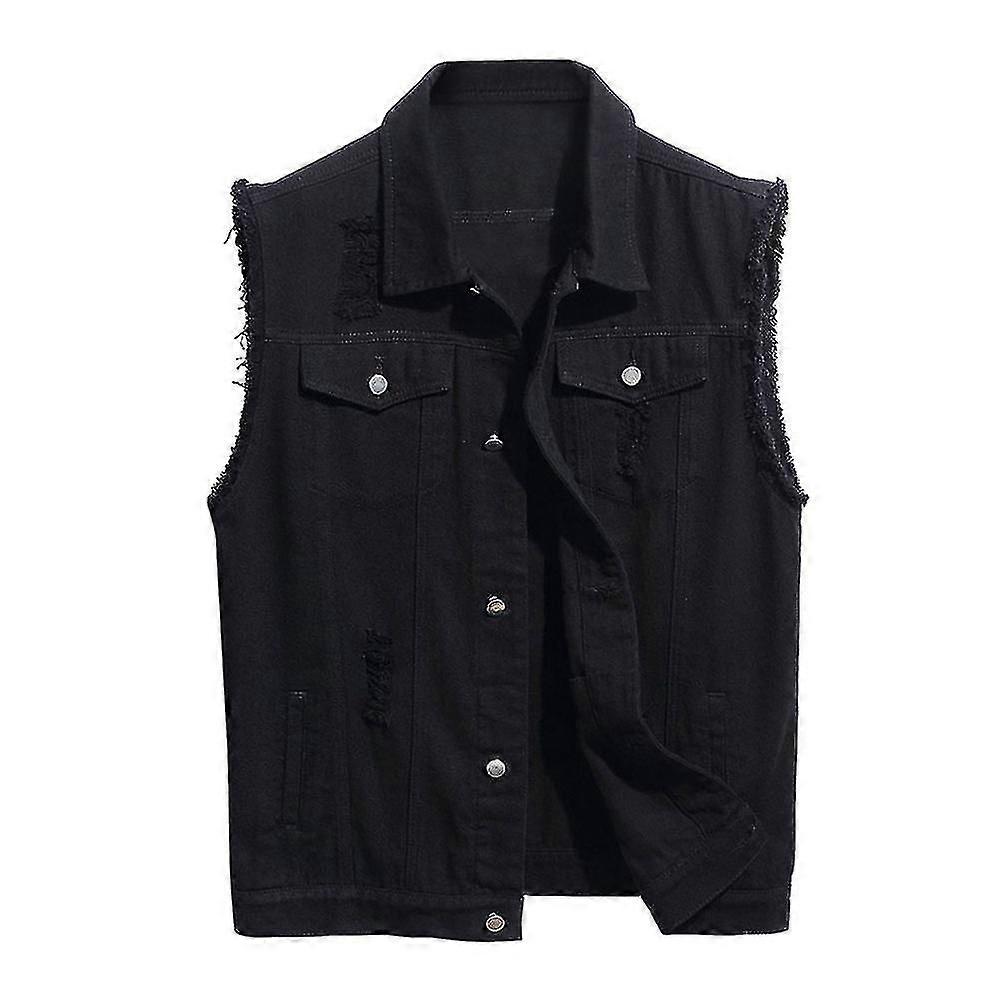 Mens Casual Ripped Denim Vest Classic Trucker Button Down Sleeveless Jean Waistcoat