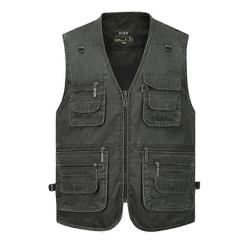 Men's Vest Casual Jacket Spring and Autumn Loose Style Cotton Multi-pocket Zipper Windproof Coat Collarless Sleeveless Jacket for Man