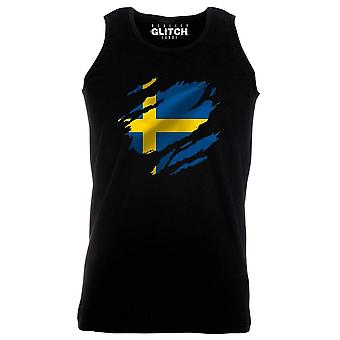Colete Masculino com Bandeira da Suécia Rasgada com Falha na Realidade
