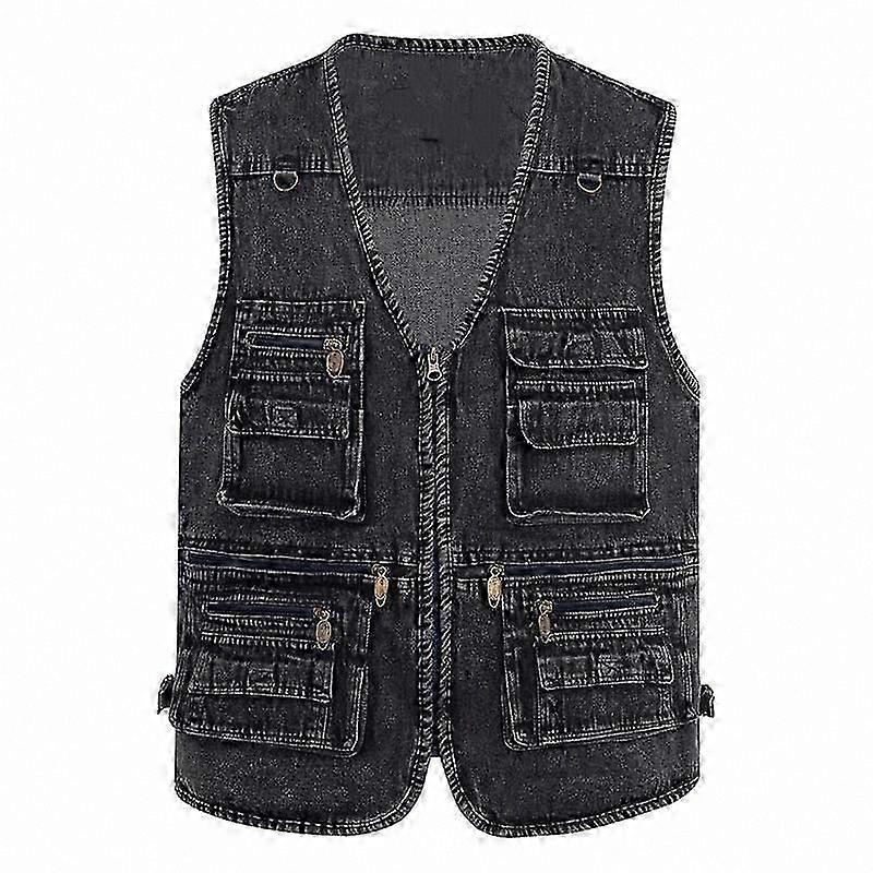 Men's Plus Size Denim Vest with Multiple Pockets Sleeveless Casual Coat for Spring and Autumn Loose Fit Male Apparel XL-5XL