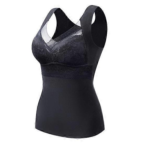 Women Thermal Vest V-Neck Sleeveless Padded Wireless Bottoming Tops Slim Fit Solid Color Temperature Locking Velvet