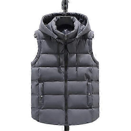 Unisex Cotton Hooded Waistcoat with Stand Collar & Zipper Placket - Warm Sleeveless Vest Jacket with Pockets in Solid Color