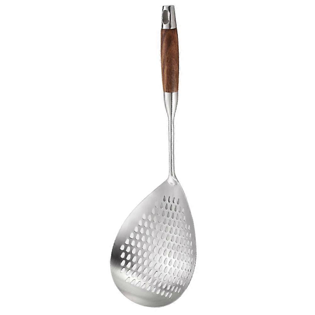 Stainless Steel Slotted Spoon with Wood Handle for Home Use 7 Inch