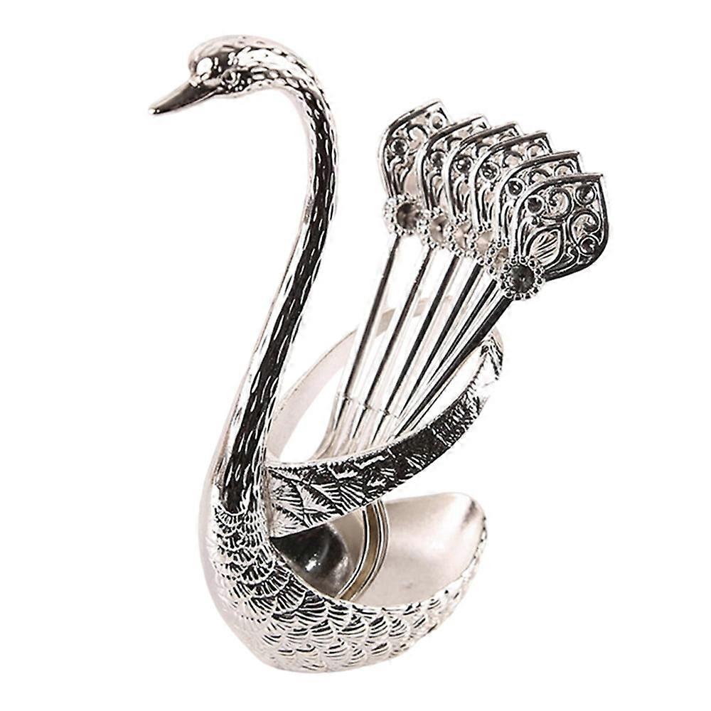 Coffee Spoon, Serving Bar Dessert Spoon with Swan Holder Coffee Dessert Spoon Set Spoon Organizer with 6pcs Coffee Dessert Spoon