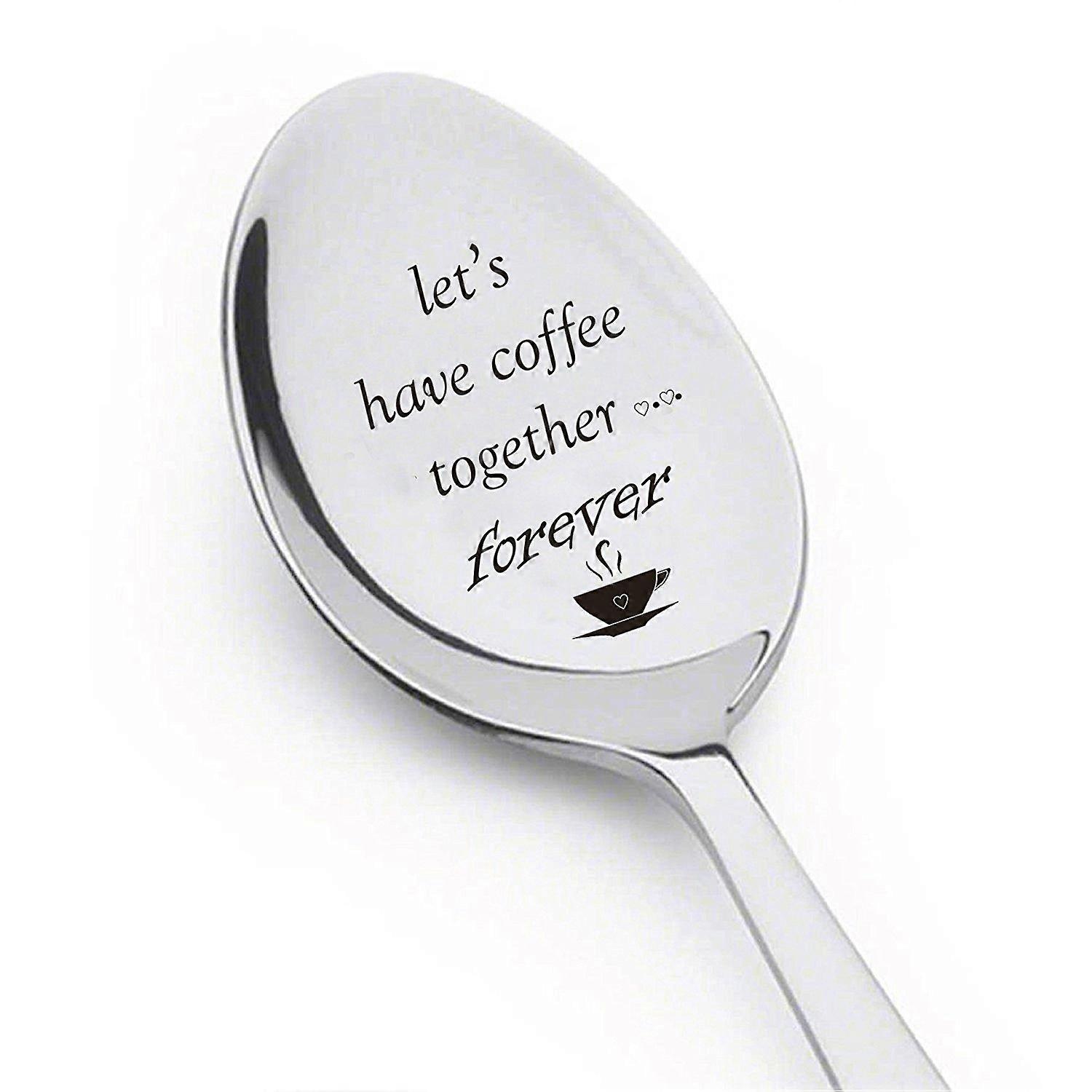 Let's Have Coffee Together Forever Stainless Steel Espresso Spoon Engraved Friendship Gift for Coffee Lovers Crafted for lasting memories and everyday use, this engraved stainless steel espresso spoon is the gift for coffee enthusiasts and close friends. The heartfelt message 'Let's Have Coffee Together Forever' is precisionengraved using industrial standard engraving technology, ensuring the inscription remains clear and beautiful even after years of use and countless washes. Key Features: quality stainless steel for durability, corrosion resistance, and a polished look Engraving that will not fade, chip, or wear away over time, even after extensive cleaning Generous 7inch size, ideal for espresso, coffee, tea, and other beverages Smooth finish and comfortable handle for effortless stirring and serving Practical Uses: 1. A thoughtful gift for a friend moving away, serving as a reminder of shared coffee moments 2. for Friendship Day or special occasions to express appreciation to loved ones 3. Everyday use at home or in cafes for stirring espresso, tea, or specialty drinks This engraved stainless steel spoon combines functionality with sentimental value, making it a timeless keepsake and a useful daily accessory for anyone who loves coffee.
