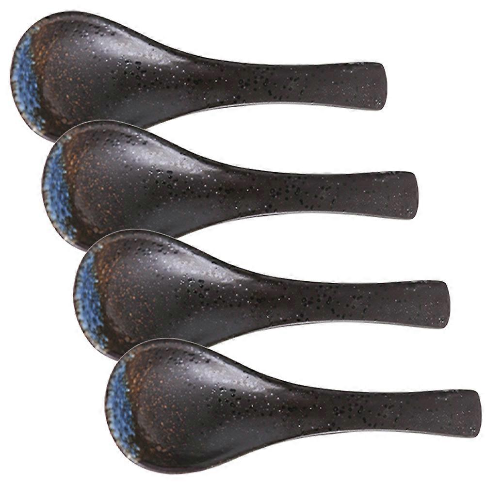 Heat-Resistant Ceramic Spoon Serving Porridge Dark Brown Curved Handle Simple Retro 4Pcs