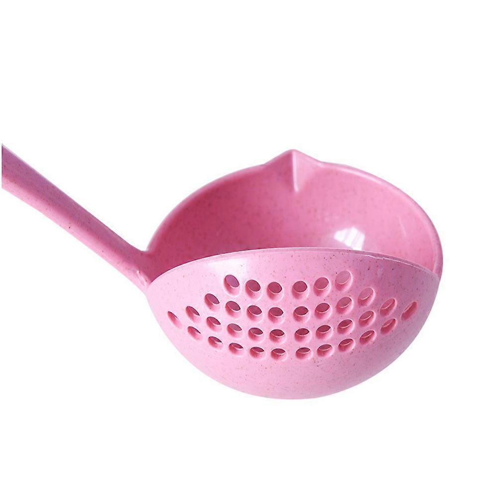 This 2 in 1 straining spoon is made from and which safe for food use without heavy metal. The ergonomic design of strainer and spoon will its practicability for kitchen uses. No more extra tool needed. It’s ultimately and perfect for everyday use. Features - Color: Pink. - Material: Plastic. - Size: Approx. * 8 * 8cm/ 9.45 * 3.1 * 3.1 inch (L*W*H). - With filter hole design, can effectively filter out water and oil. - Space saving with a hanging hole, can be hanging in the . - Diversion mouth can easily spoon out the soup. - -proof, anti- and easy to clean. - Dishwasher, microwave, fridge and freezer safe. Package list: 1 * 2 In 1 Plastic Straining Ladle Soup Pan Spoon with Filter Strainer Kitchen Dinnerware Cooking Tools (Pink)