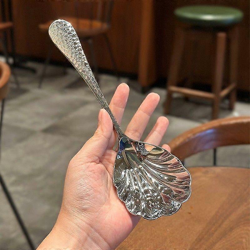 Shell Shape Stainless Steel Spoon With Long Handle Ladle Restaurant Dessert Spoon Ice Cream Scoops Kitchen Accessories Tool