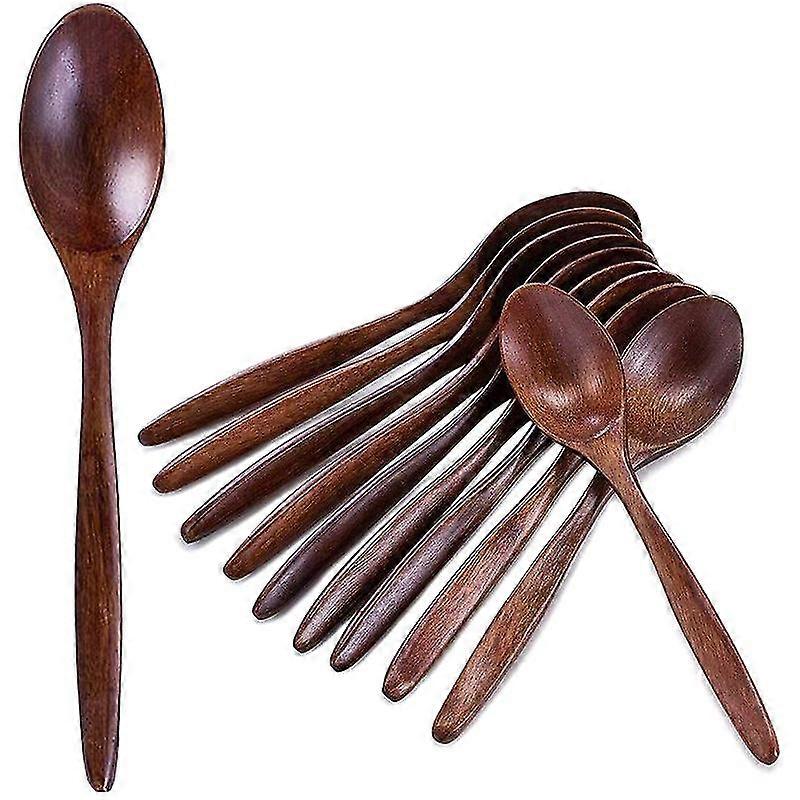 Wooden Spoons, 10 PCS Wood Soup Spoon Set, Long Handle Natural Wood Table Spoons for Eating Mixing