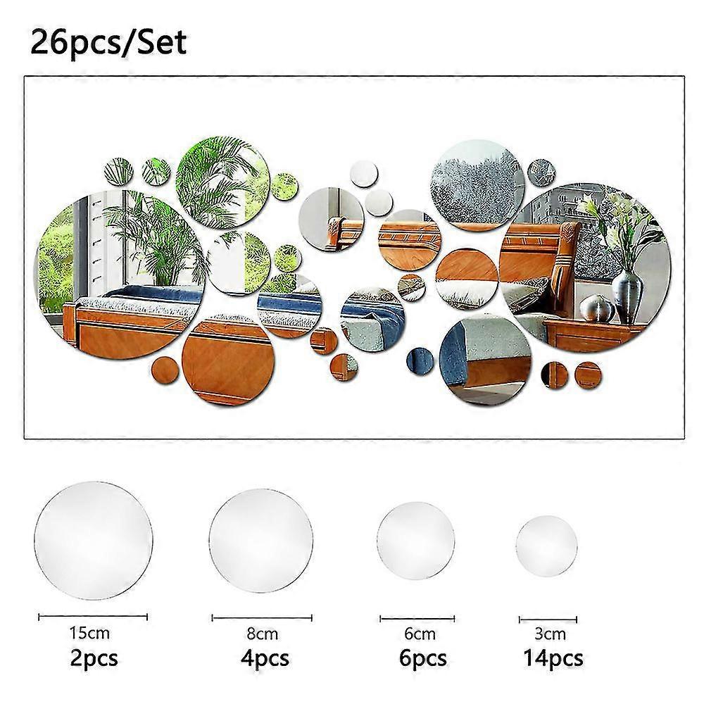 Self adhesive, tear and stick, environment-friendly materialProduct name: round mirror combination wall stickerProduct model: H01,229Material: AcrylicThickness: 1mmPackage: OPP bag26 pieces combination: including 15cmx2 pieces, 8cmx4 pieces, 6cmx6 pieces, 3cmx14 piecesPackage size: 15x15x2.6cm, weight: 120g32 pieces combination: including 15cmx2 pieces, 8cmx4 pieces, 5.5cmx8 pieces, 3.5cmx4 pieces, 2.5cmx3 pieces, 2.2cmx11 piecesPackage size: 15x15x3cm, weight: 130gFunctions and features:1 Environmental protection, waterproof and anti-corrosion.2 Decorative mirror is as clear as the mirror and as close as the mirror to achieve perfect decorative effect.3 Simple and generous, full of rhythm, and expand the sense of space.[Tips]1 When I first received it, the surface will have a layer of protective film, which is as hazy as fog. After the protective film is removed, it will be a bright mirror.2 The mirror surface is made of acrylic material, not glass, so after the protective film is removed, do not wipe it hard to avoid scratches.3 After pasting, if the protective film on the front cannot be removed with nails, it can be easily removed with the help of a blade, needle, etc.