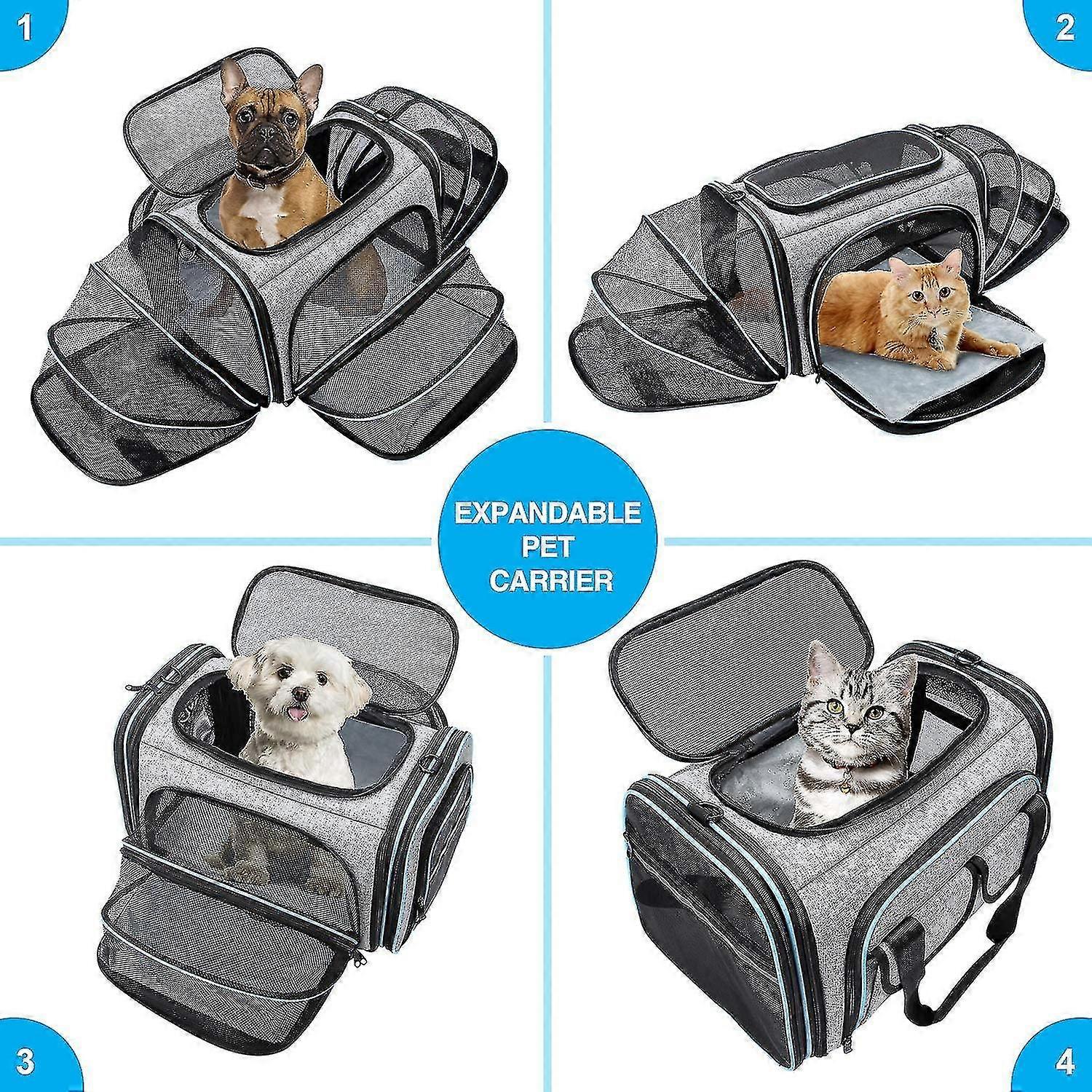 Airline Approved Pet Carrier, Large Soft Si Pet Travel Tsa Carrier 4 Sides Expandable Cat Collapsible Carrier With Removable Fleece Pad And Pockets Tw