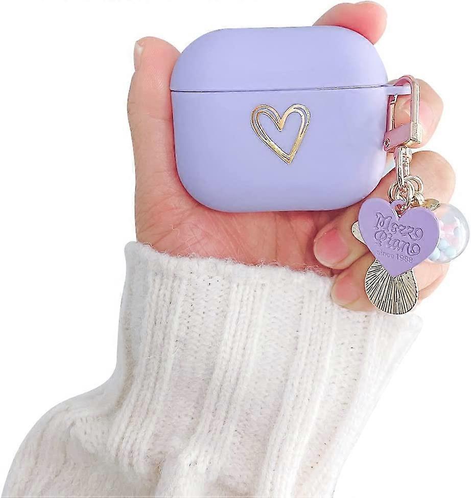 Compatible with AirPods Pro Case Cover 2019,Soft TPU with Gold Heart Cute Lucky Ball Keychain Shockproof Cover Case for Girls Women Airpods Pro [Not F
