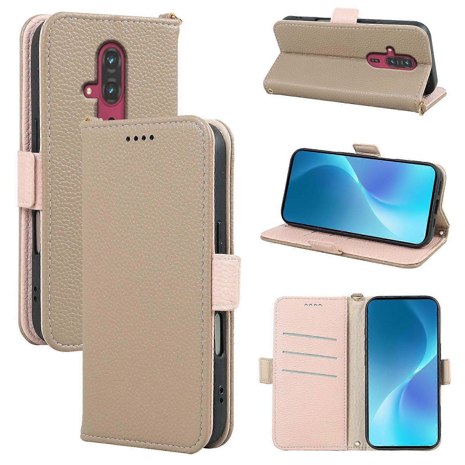 Compatible with Fujitsu RakuRaku/A401FC litchi grain side buckle F-53E flip phone leather case with card slot