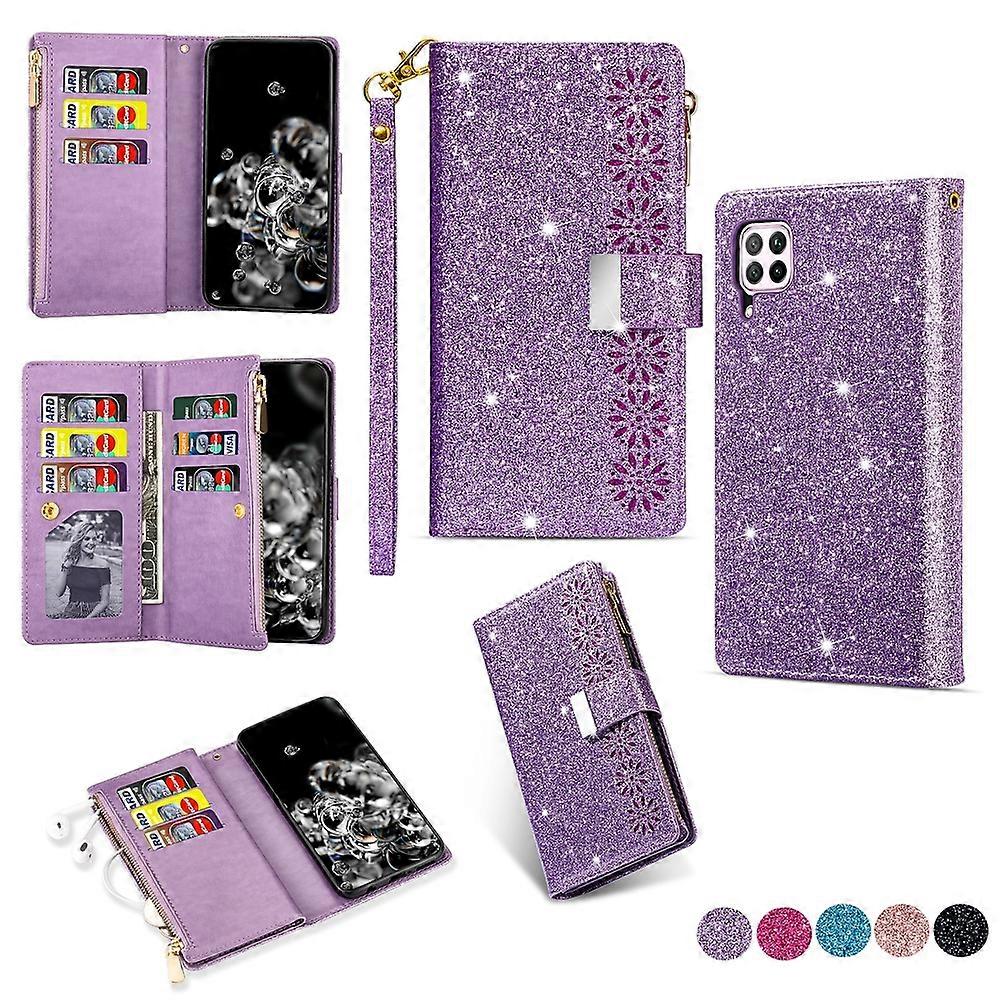Compatible with Huawei P40 Lite Bling Wallet Case Glitter Leather Magnetic Stand with Card Slots Zipper Pocket Cover