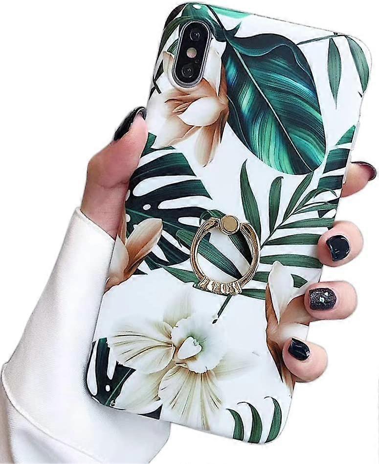 Compatible with iPhone XS Max Case,Flower Case Cute Fashion for Men Women Girls with 360 Degree Rotating Ring Kickstand Soft TPU Shockproof Cover Desi