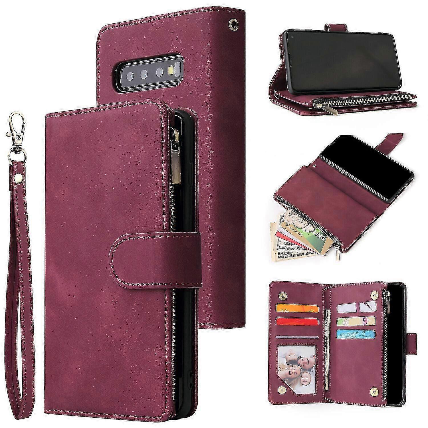 Compatible with Samsung Galaxy S10 Plus Leather Magnetic Handbag Zipper Pocket Cover Wrist Strap Compatible With Samsung Galaxy S10 Plus Case -HK603