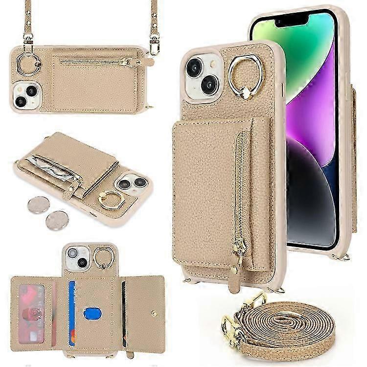 Compatible For iPhone 14 / 13 Case Litchi Texture Card Bag Leather+TPU Crossbody Phone Cover with Ring Kickstand
