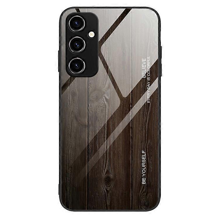 Compatible For Samsung Galaxy A54 5G Wooden Pattern Phone Case Tempered Glass Back TPU Frame TPU Shock Protective Cover