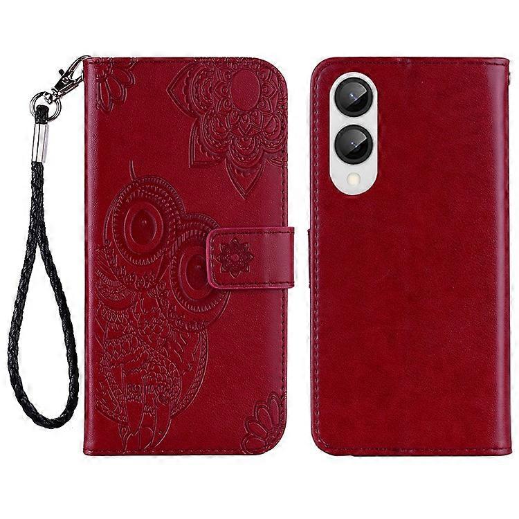 Compatible For Samsung Galaxy S25 Edge Case Owl Flower Imprinted Leather Cover Wallet with Strap