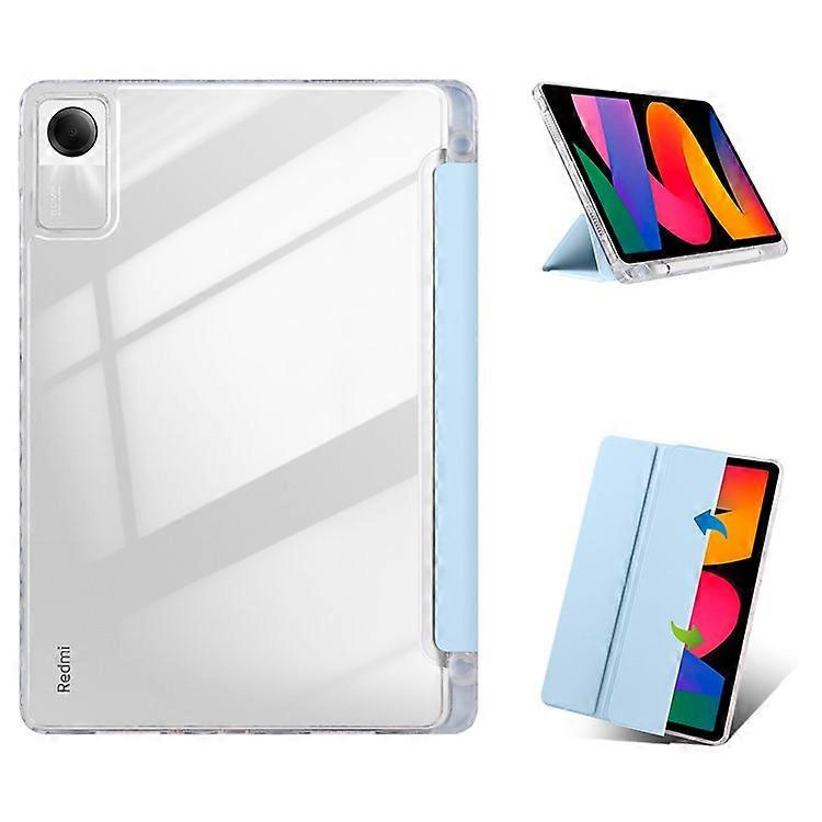 Compatible For Xiaomi Redmi Pad SE Case Tri-Fold Stand Leather+TPU+Acrylic Clear Back Tablet Cover