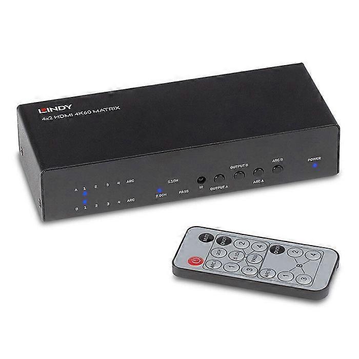 HDMI Matrix Switch - LINDY - 4K 60Hz - 4 Inputs - 2 Outputs - Optical and Analog Audio